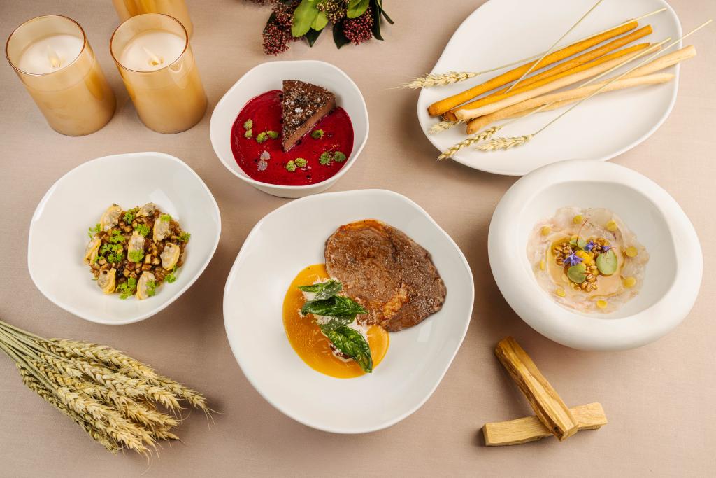 В центре сета — пшеница, первый одомашненный человеком злак. Сет исследуее ее метаморфозы: в каждом блюде — новая техника работы со злаком, доказывающая его многогранность. Вкус подчеркивают домашние уксусы и соусы из квашеных фруктов.