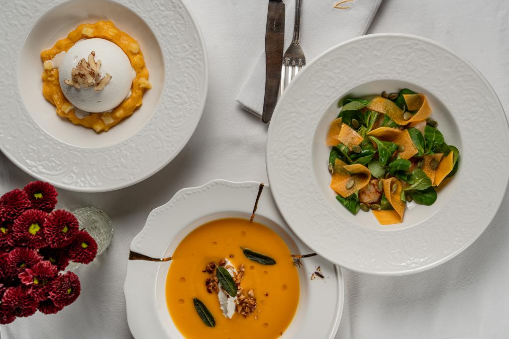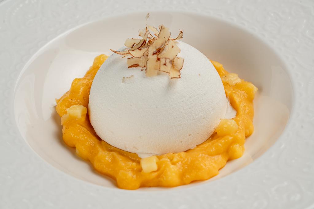 В своем сете Иван Штучкин раскрывает тыкву как символ осени — от нежного крема до геля в десерте, проходя путь от французской классики до авторской интерпретации.