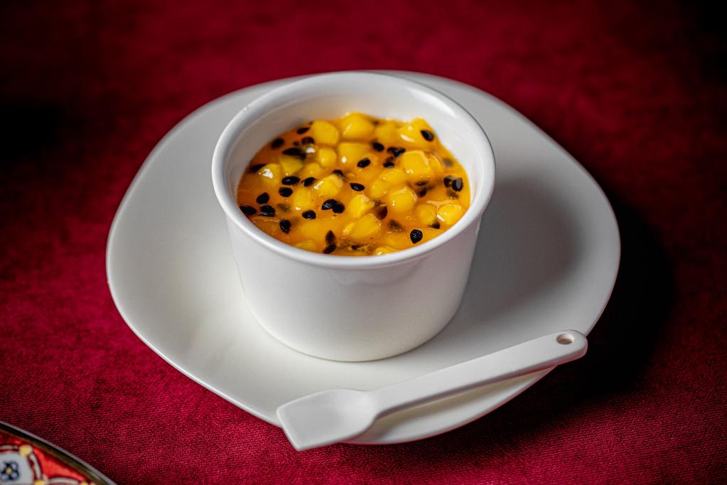 • Сливочная панна-котта на основе сливок Петмол с нотками ванили и тропическим соусом с манго и маракуйей